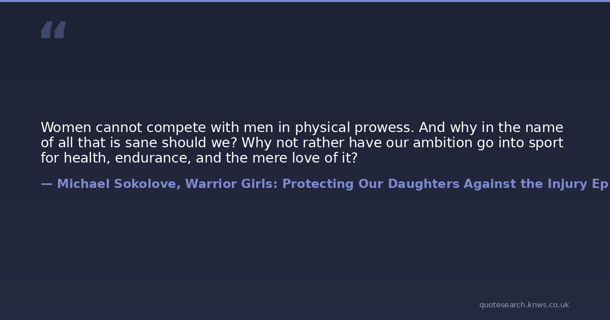 Women cannot compete with men in physical prowess. And why in the name of all that is sane should we? Why not rather have our ambition go into sport for health, endurance, and the mere love of it?