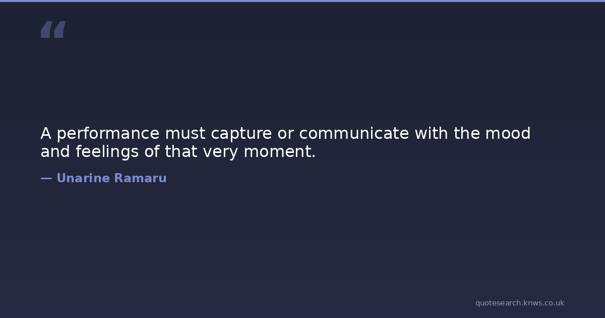 A performance must capture or communicate with the mood and feelings of that very moment. art communication feelings mood music performance Download Image Share on X Share on Facebook Copy Link