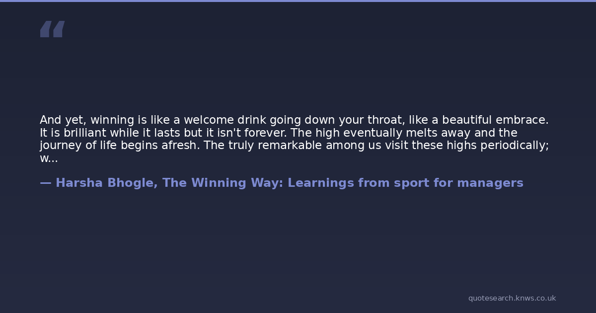 And yet, winning is like a welcome drink going down your throat, like a beautiful embrace. It is brilliant while it lasts but it isn't forever. The high eventually melts away and the journey of life begins afresh. The truly remarkable among us visit these highs periodically; winning then becomes a journey, a graph where each point is crucial but is in reality merely part of a larger curve.