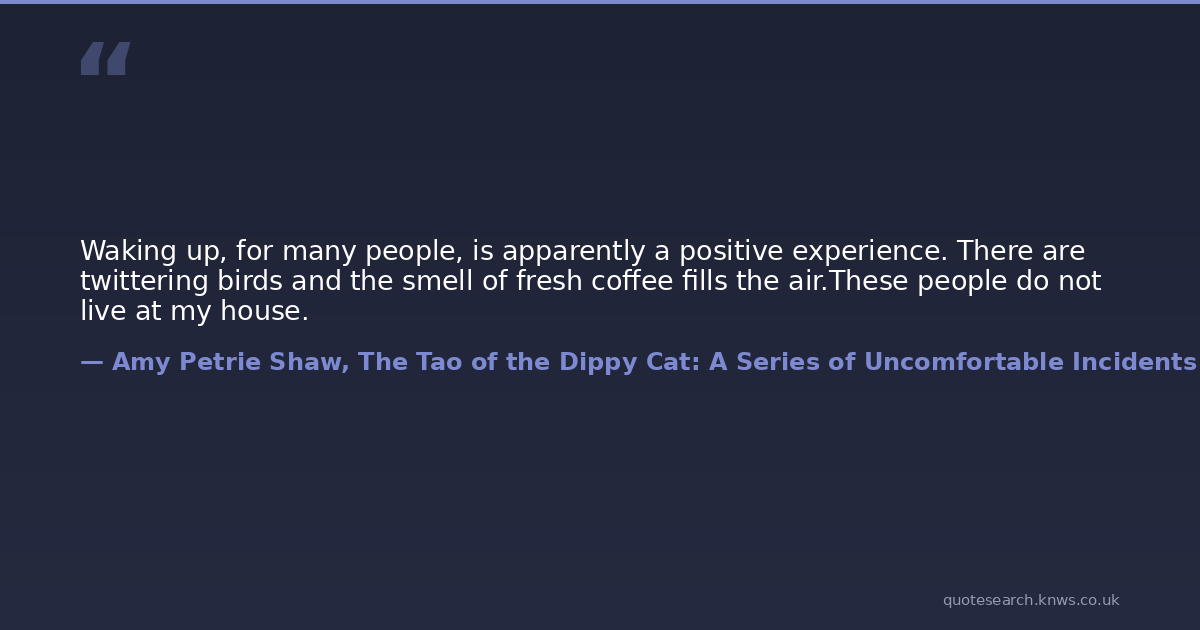 Waking up, for many people, is apparently a positive experience. There are twittering birds and the smell of fresh coffee fills the air.These people do not live at my house.