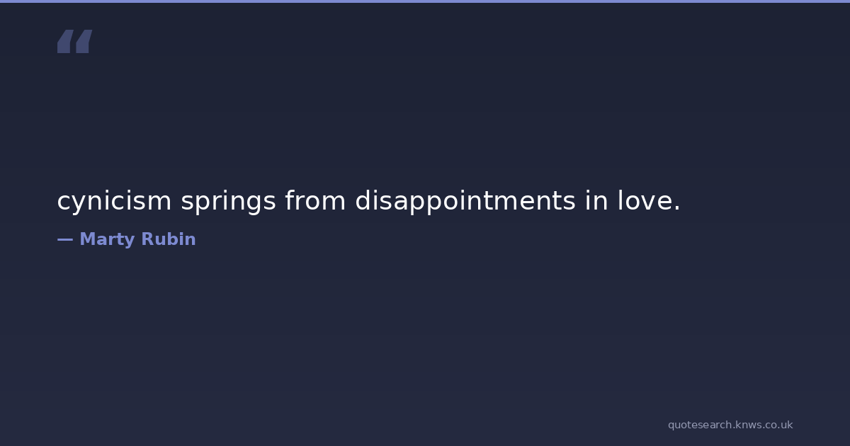 cynicism springs from disappointments in love. cynicism disappointment love Download Image Share on X Share on Facebook Copy Link