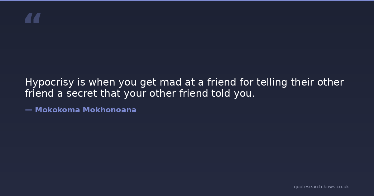 Hypocrisy is when you get mad at a friend for telling their other friend a secret that your other friend told you.