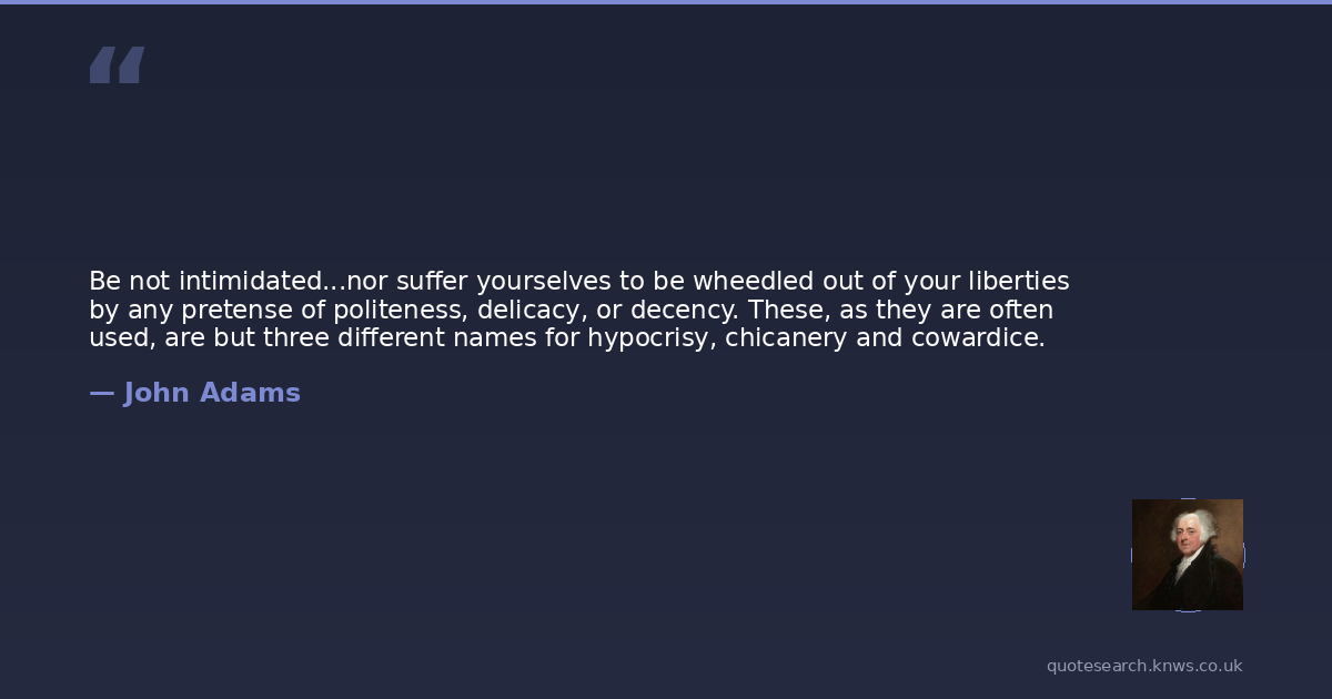 Be not intimidated...nor suffer yourselves to be wheedled out of your liberties by any pretense of politeness, delicacy, or decency. These, as they are often used, are but three different names for hypocrisy, chicanery and cowardice.