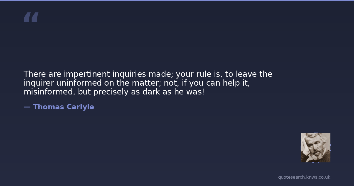 There are impertinent inquiries made; your rule is, to leave the inquirer uninformed on the matter; not, if you can help it, misinformed, but precisely as dark as he was!
