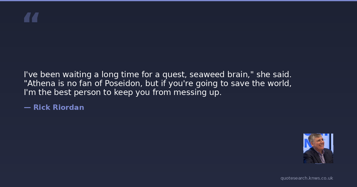 I've been waiting a long time for a quest, seaweed brain," she said. "Athena is no fan of Poseidon, but if you're going to save the world, I'm the best person to keep you from messing up.