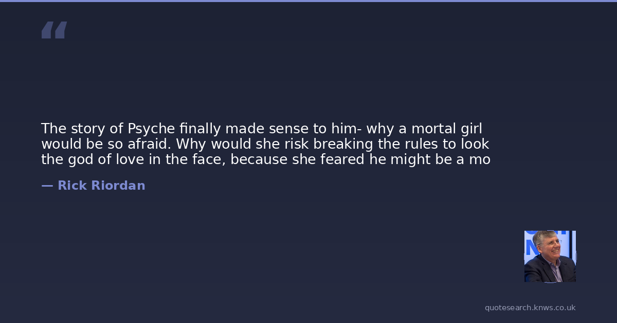 The story of Psyche finally made sense to him- why a mortal girl would be so afraid. Why would she risk breaking the rules to look the god of love in the face, because she feared he might be a mo