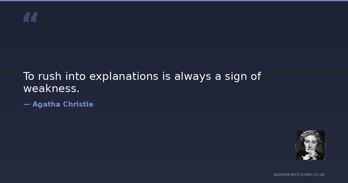 To rush into explanations is always a sign of weakness.