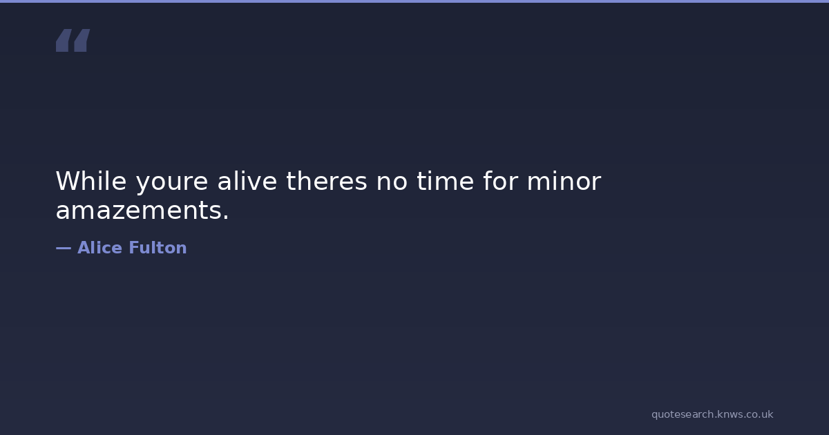 While youre alive theres no time for minor amazements.
