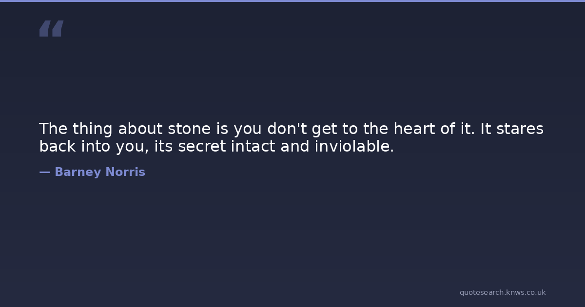 The thing about stone is you don't get to the heart of it. It stares back into you, its secret intact and inviolable. contemporary Download Image Share on X Share on Facebook Copy Link