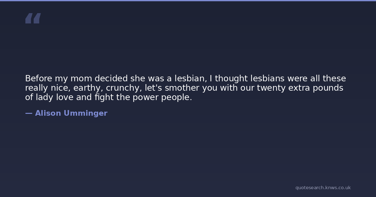 Before my mom decided she was a lesbian, I thought lesbians were all these really nice, earthy, crunchy, let's smother you with our twenty extra pounds of lady love and fight the power people.