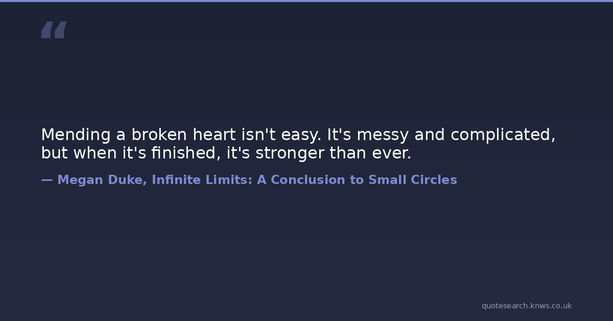 Mending a broken heart isn't easy. It's messy and complicated, but when it's finished, it's stronger than ever.