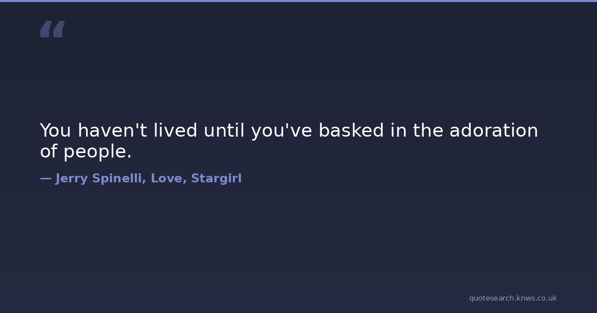 You haven't lived until you've basked in the adoration of people. adulation fame Download Image Share on X Share on Facebook Copy Link