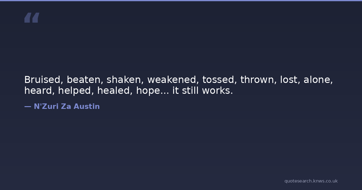 Bruised, beaten, shaken, weakened, tossed, thrown, lost, alone, heard, helped, healed, hope... it still works.