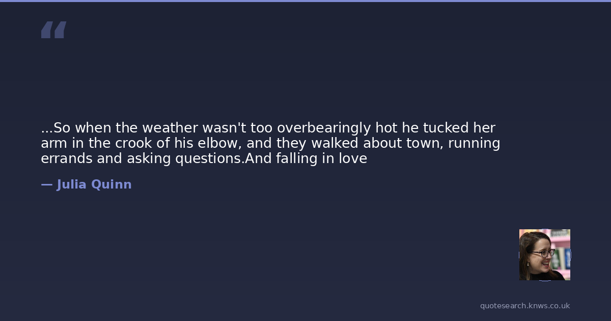 Julia Quinn was American historical romance author. Julie Pottinger, better known by her pen name, Julia Quinn, is an American author. Her novels have been translated into 41 languages and have appeared on The New York Times Bestseller List nineteen times. Read more on Wikipedia →