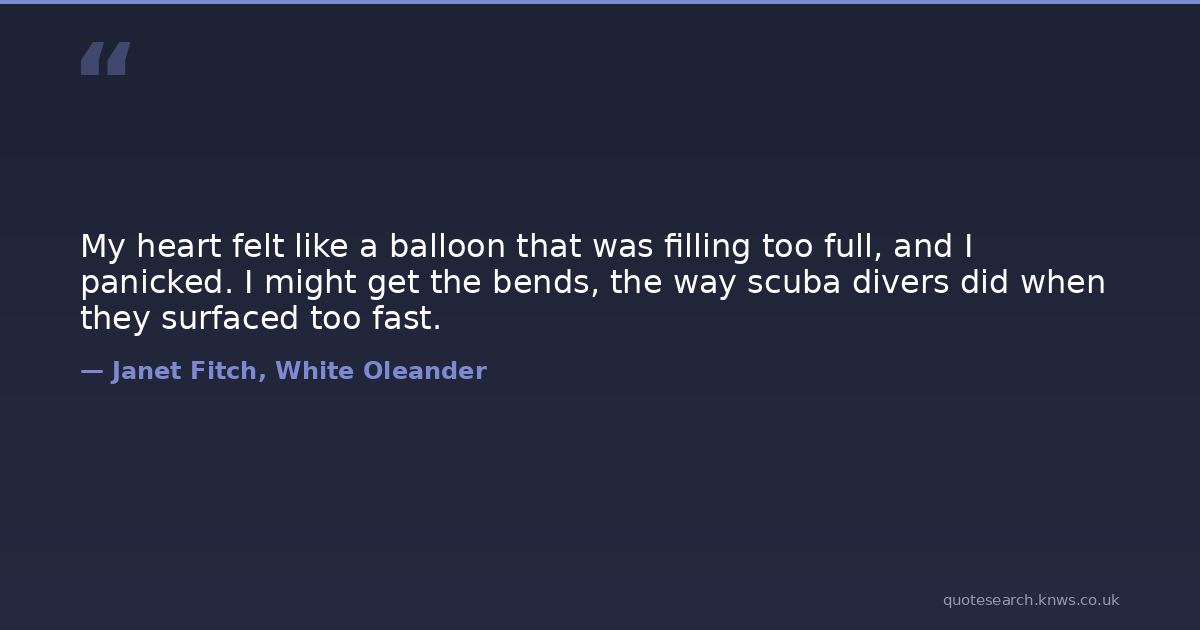 My heart felt like a balloon that was filling too full, and I panicked. I might get the bends, the way scuba divers did when they surfaced too fast.