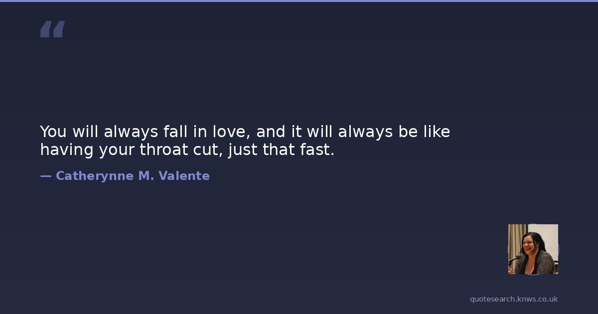 You will always fall in love, and it will always be like having your throat cut, just that fast.
