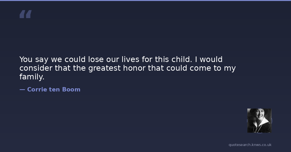 You say we could lose our lives for this child. I would consider that the greatest honor that could come to my family.