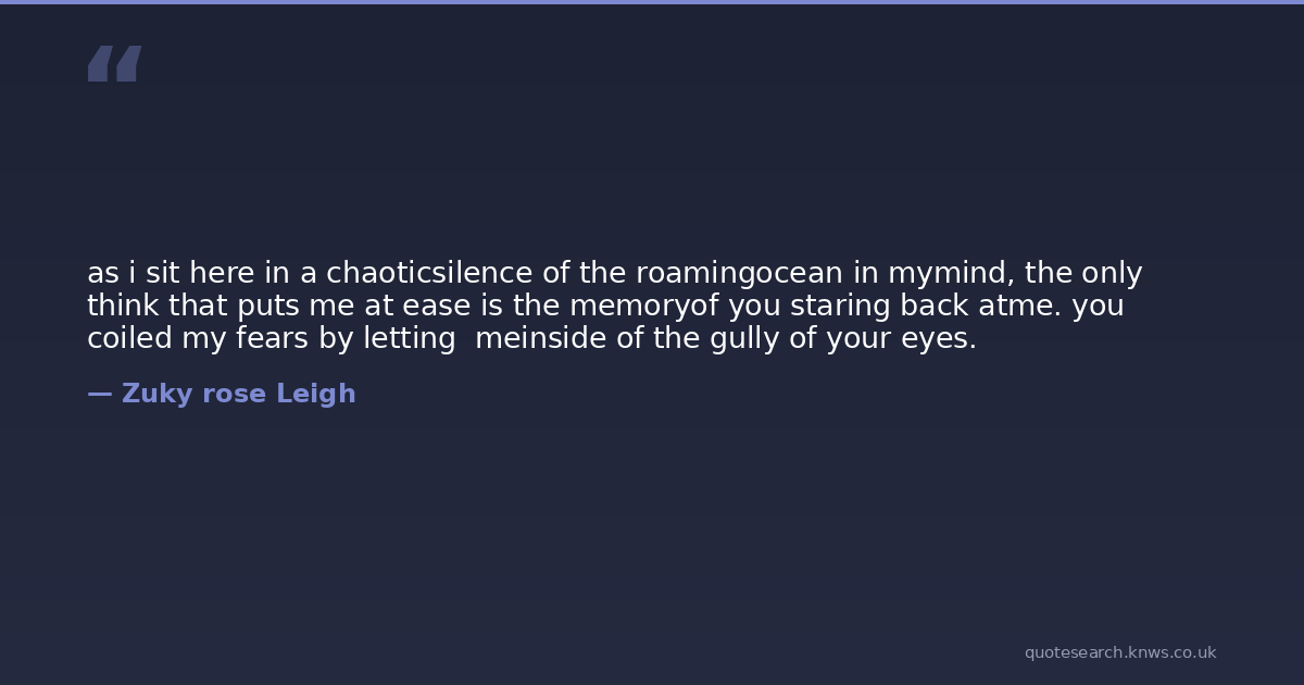 as i sit here in a chaoticsilence of the roamingocean in mymind, the only think that puts me at ease is the memoryof you staring back atme. you coiled my fears by letting meinside of the gully of your eyes.