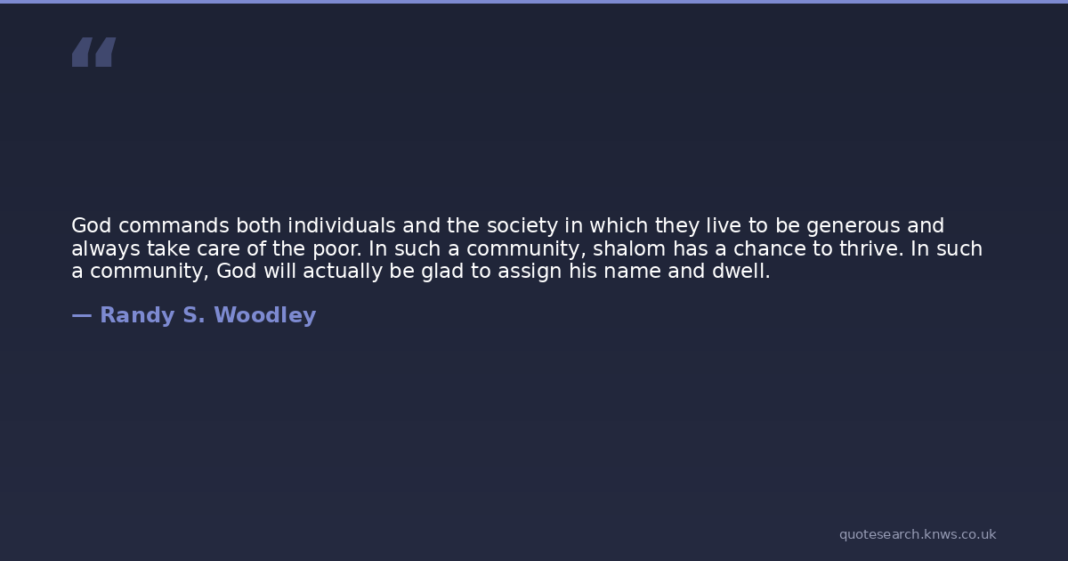 God commands both individuals and the society in which they live to be generous and always take care of the poor. In such a community, shalom has a chance to thrive. In such a community, God will actually be glad to assign his name and dwell.