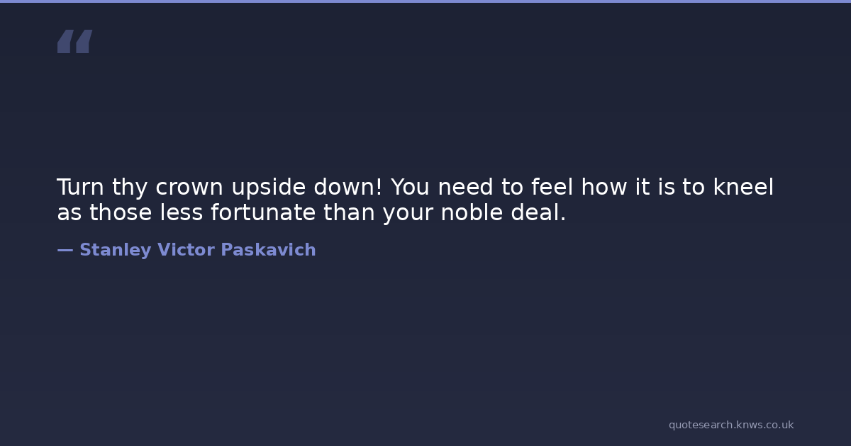Turn thy crown upside down! You need to feel how it is to kneel as those less fortunate than your noble deal.