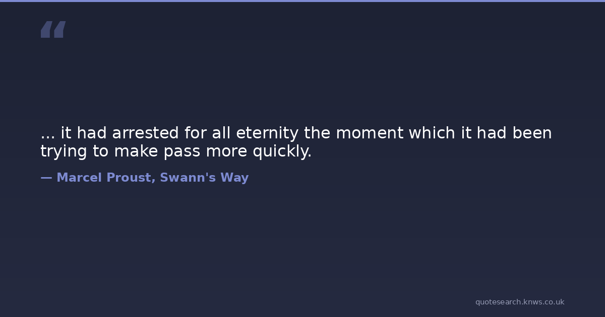 ... it had arrested for all eternity the moment which it had been trying to make pass more quickly.