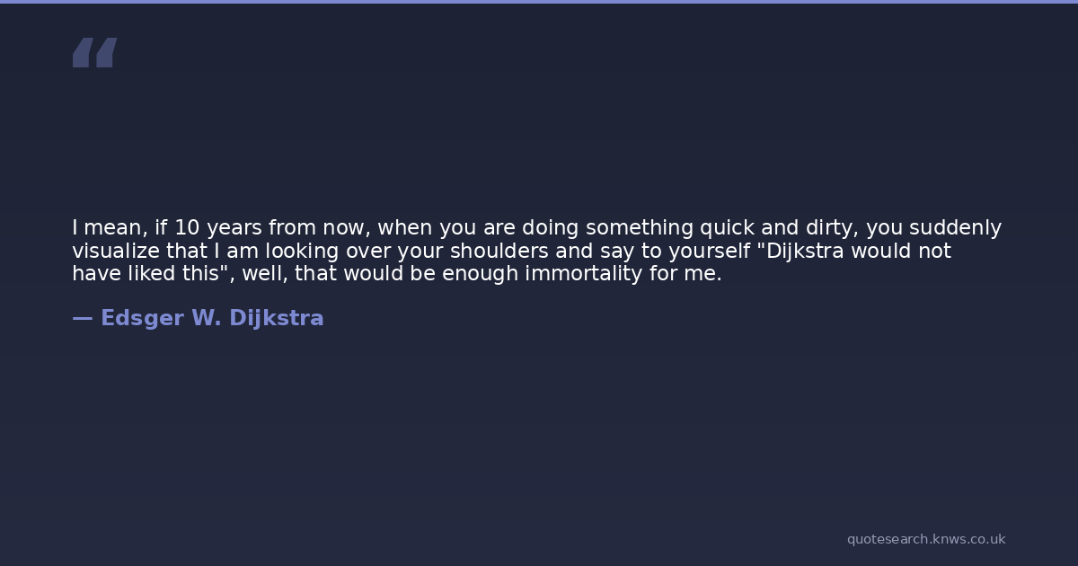 I mean, if 10 years from now, when you are doing something quick and dirty, you suddenly visualize that I am looking over your shoulders and say to yourself "Dijkstra would not have liked this", well, that would be enough immortality for me.