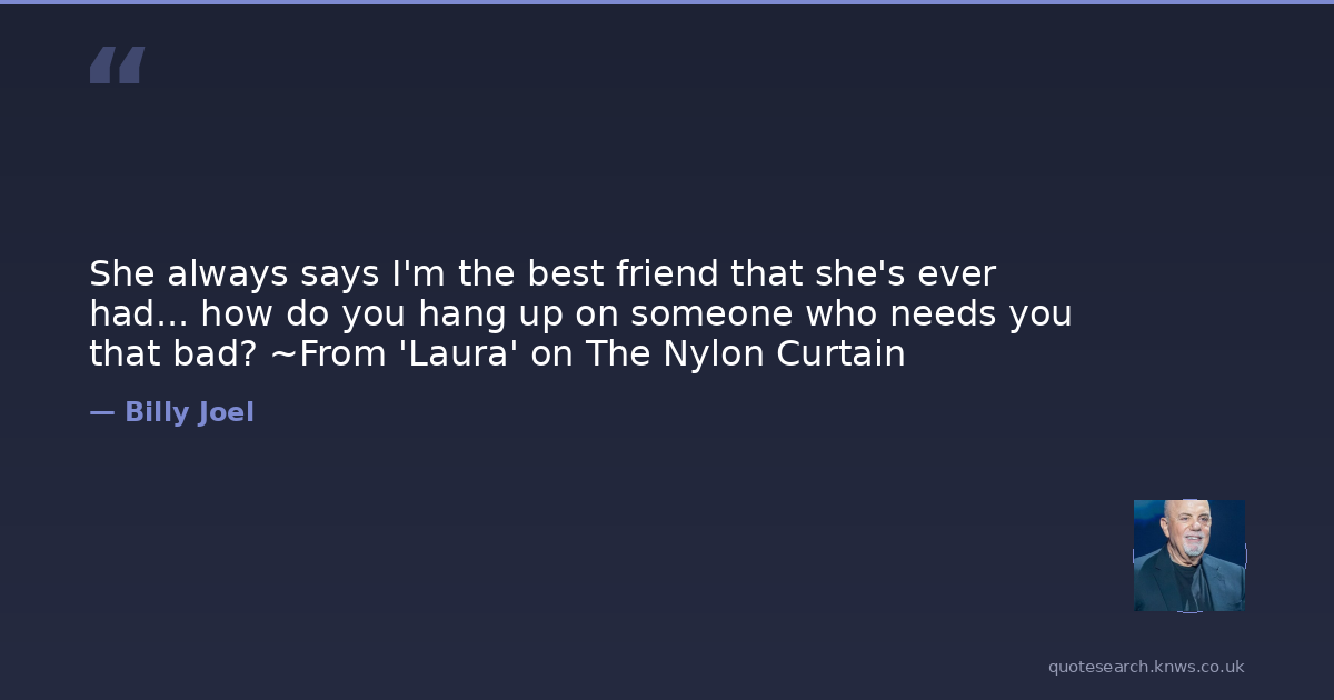 She always says I'm the best friend that she's ever had... how do you hang up on someone who needs you that bad? ~From 'Laura' on The Nylon Curtain