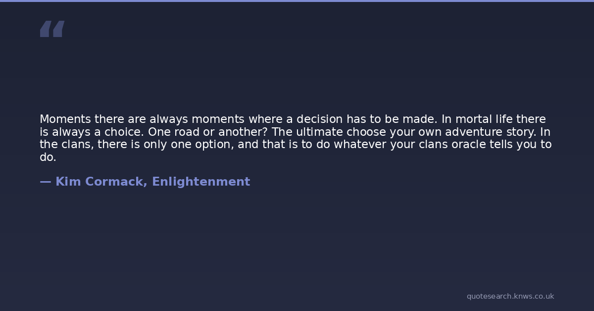 Moments there are always moments where a decision has to be made. In mortal life there is always a choice. One road or another? The ultimate choose your own adventure story. In the clans, there is only one option, and that is to do whatever your clans oracle tells you to do.