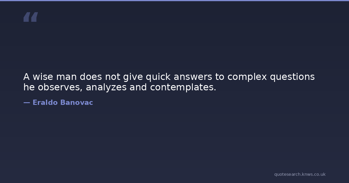 A wise man does not give quick answers to complex questions he observes, analyzes and contemplates.