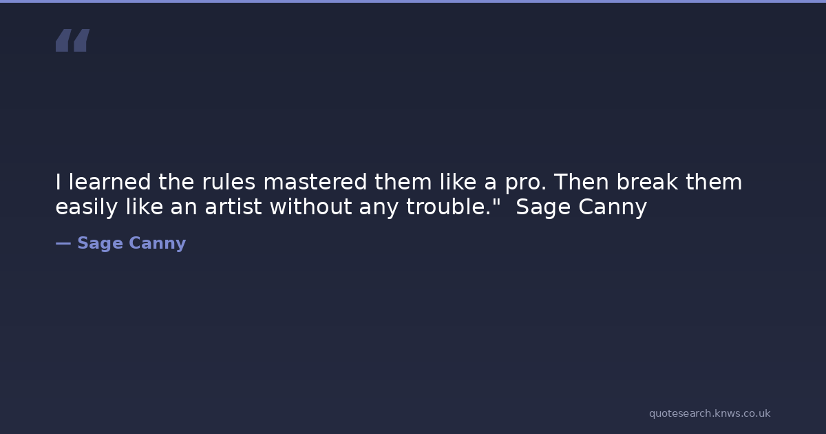 I learned the rules mastered them like a pro. Then break them easily like an artist without any trouble." Sage Canny are be broken did i meant rules to which Download Image Share on X Share on Facebook Copy Link