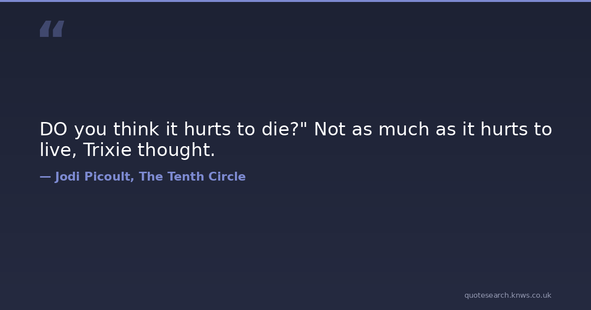 DO you think it hurts to die?" Not as much as it hurts to live, Trixie thought.