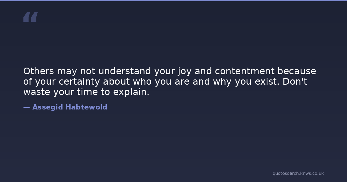 Others may not understand your joy and contentment because of your certainty about who you are and why you exist. Don't waste your time to explain.