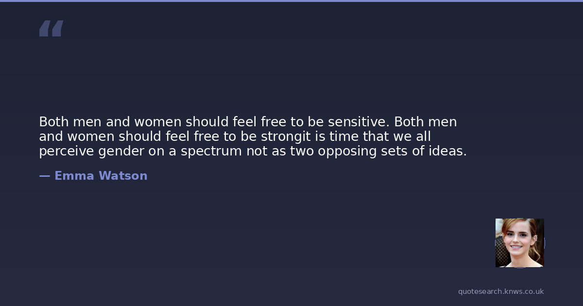 Both men and women should feel free to be sensitive. Both men and women should feel free to be strongit is time that we all perceive gender on a spectrum not as two opposing sets of ideas.