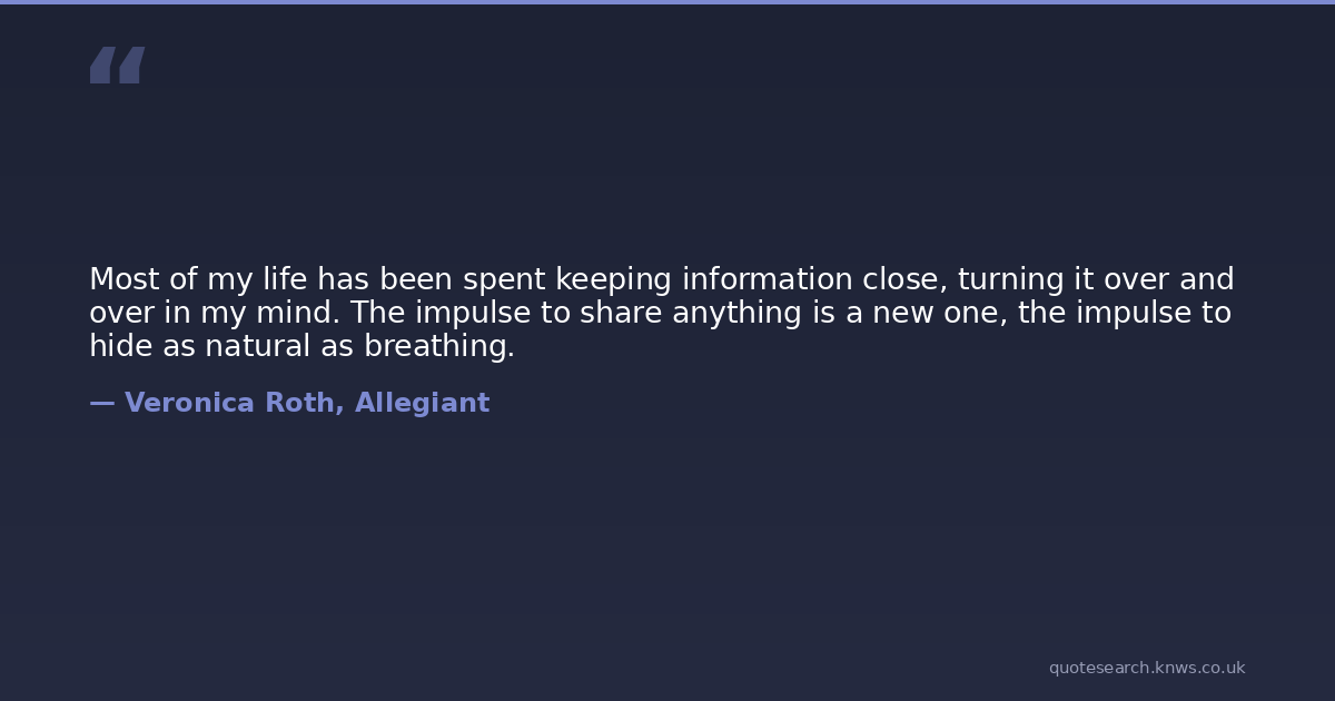 Most of my life has been spent keeping information close, turning it over and over in my mind. The impulse to share anything is a new one, the impulse to hide as natural as breathing.