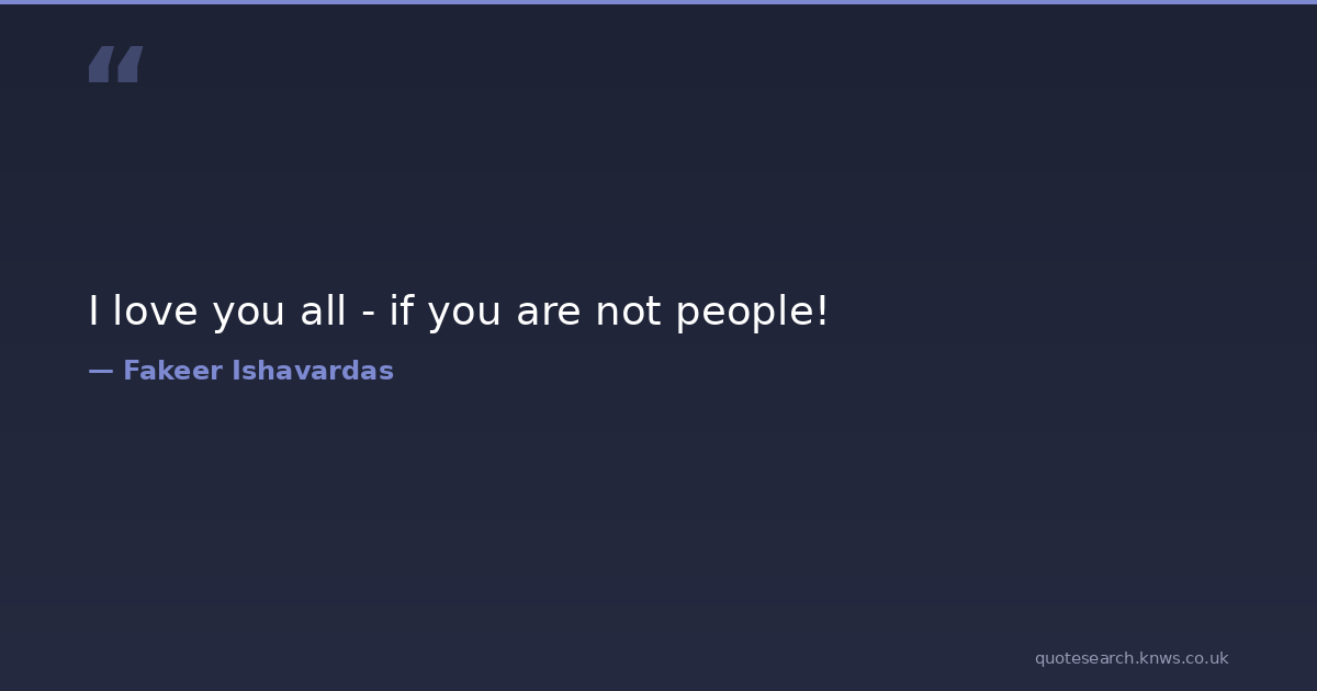 I love you all - if you are not people! comedy-humor cynical-humor dark-humor funny-humor funny-quotes good-and-evil humour-life humourous-quotes life-philosophy people-nature Download Image Share on X Share on Facebook Copy Link
