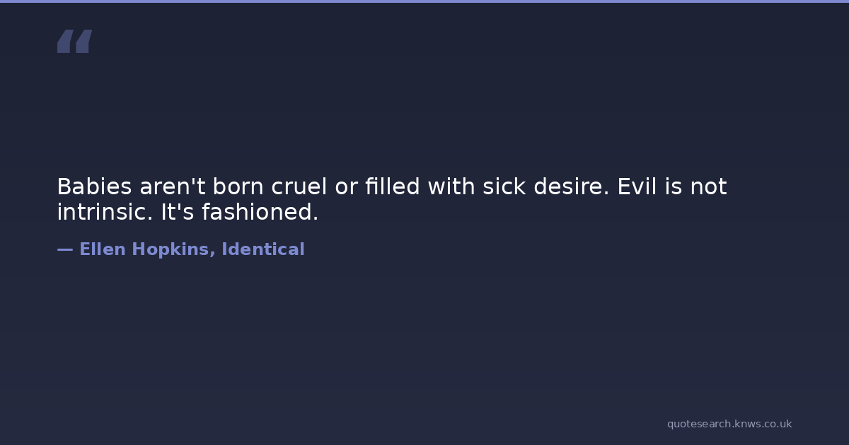 Babies aren't born cruel or filled with sick desire. Evil is not intrinsic. It's fashioned.