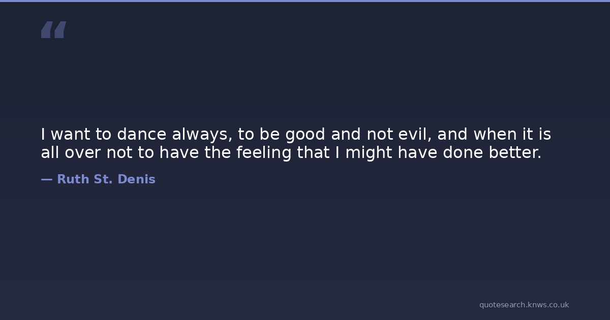 I want to dance always, to be good and not evil, and when it is all over not to have the feeling that I might have done better.