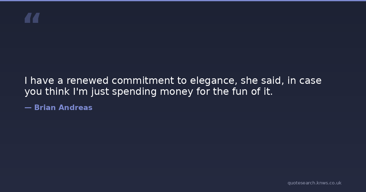 I have a renewed commitment to elegance, she said, in case you think I'm just spending money for the fun of it.