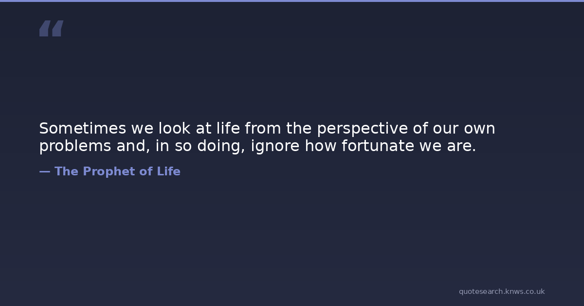 Sometimes we look at life from the perspective of our own problems and, in so doing, ignore how fortunate we are.