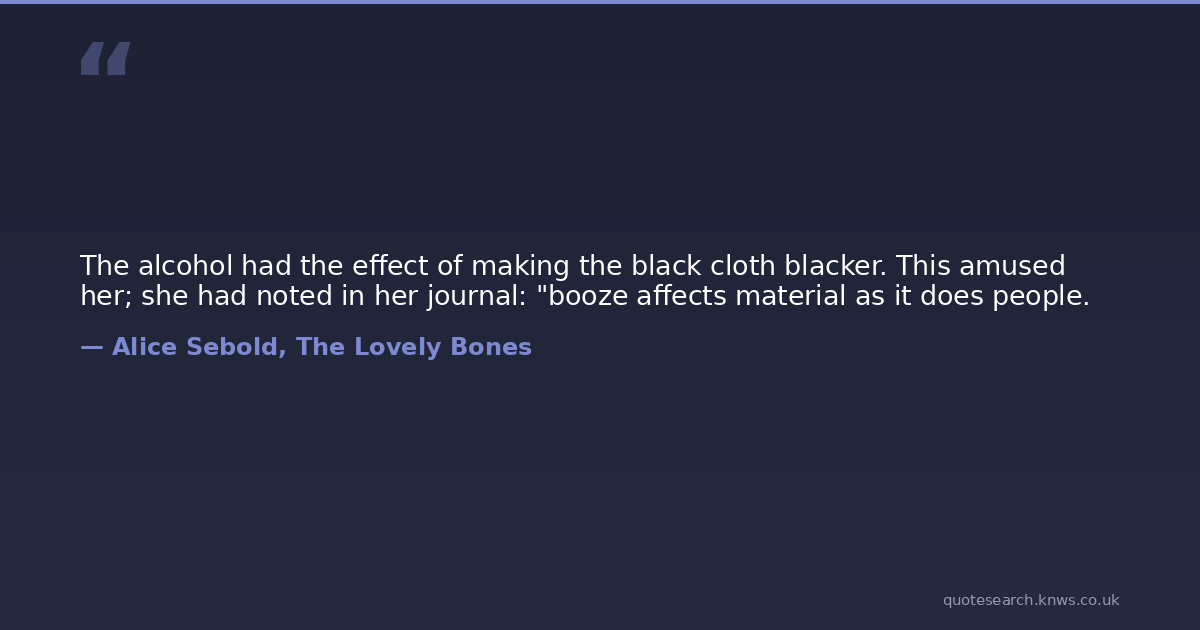 The alcohol had the effect of making the black cloth blacker. This amused her; she had noted in her journal: "booze affects material as it does people.