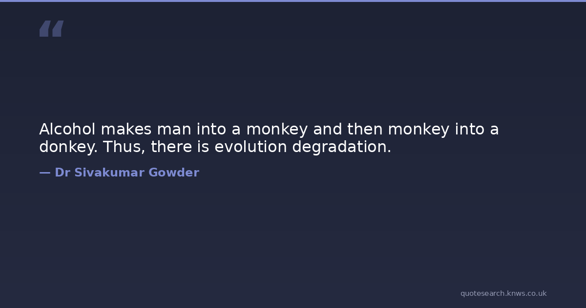Alcohol makes man into a monkey and then monkey into a donkey. Thus, there is evolution degradation.
