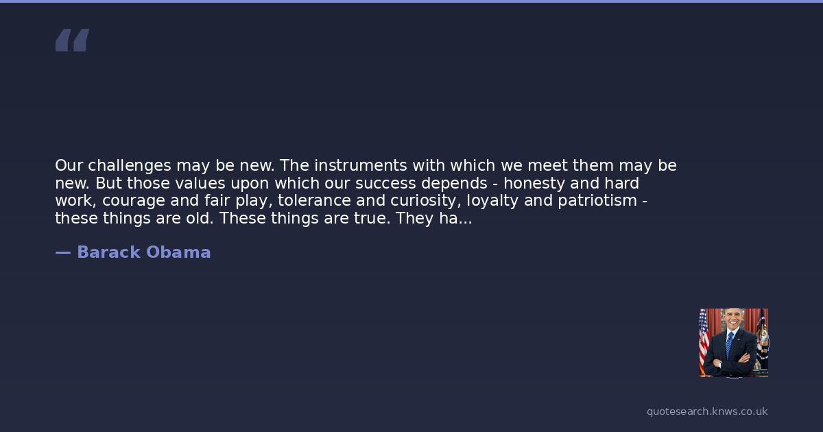 Our challenges may be new. The instruments with which we meet them may be new. But those values upon which our success depends - honesty and hard work, courage and fair play, tolerance and curiosity, loyalty and patriotism - these things are old. These things are true. They have been the quiet force of progress throughout our history. What is demanded then is a return to these truths. What is required of us now is a new era of responsibility - a recognition, on the part of every American, that we have duties to ourselves, our nation, and the world, duties that we do not grudgingly accept but rather seize gladly, firm in the knowledge that there is nothing so satisfying to the spirit, so defining of our character, than giving our all to a difficult task.