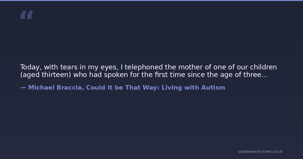 Today, with tears in my eyes, I telephoned the mother of one of our children (aged thirteen) who had spoken for the first time since the age of three...