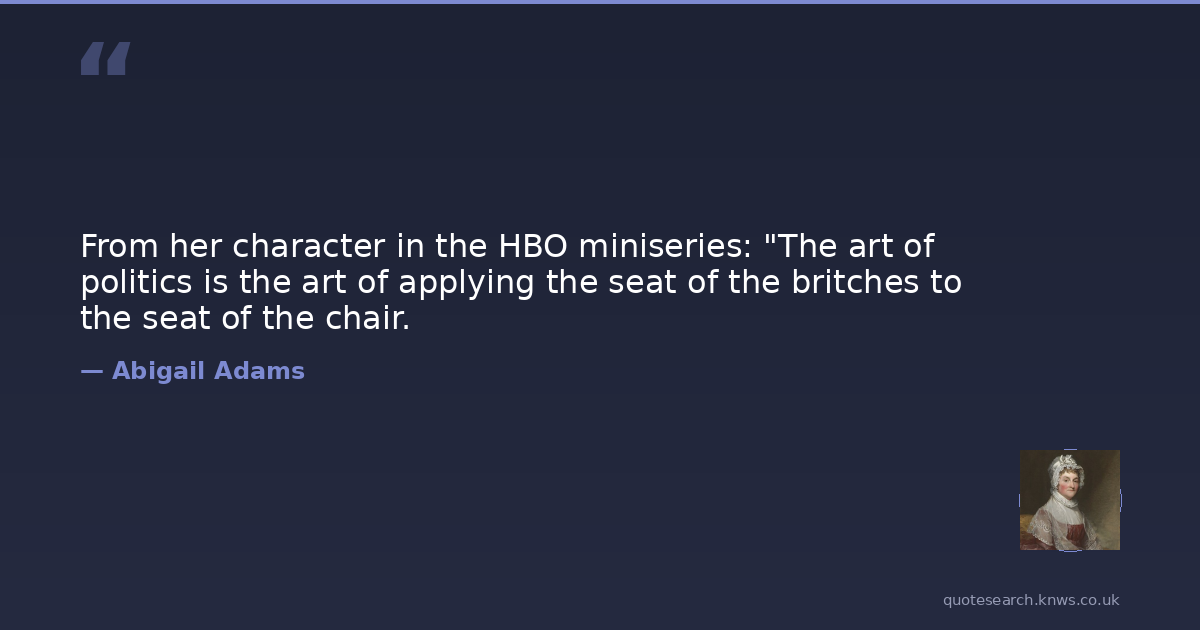 From her character in the HBO miniseries: "The art of politics is the art of applying the seat of the britches to the seat of the chair.