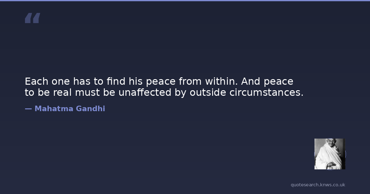 Each one has to find his peace from within. And peace to be real must be unaffected by outside circumstances.