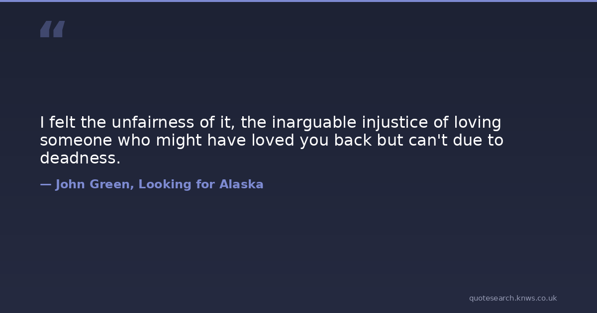 I felt the unfairness of it, the inarguable injustice of loving someone who might have loved you back but can't due to deadness.