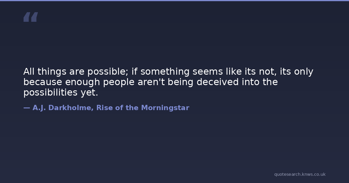 All things are possible; if something seems like its not, its only because enough people aren't being deceived into the possibilities yet.