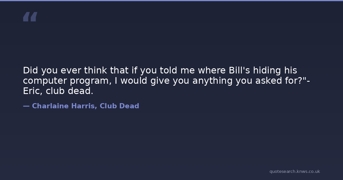 Did you ever think that if you told me where Bill's hiding his computer program, I would give you anything you asked for?"- Eric, club dead.
