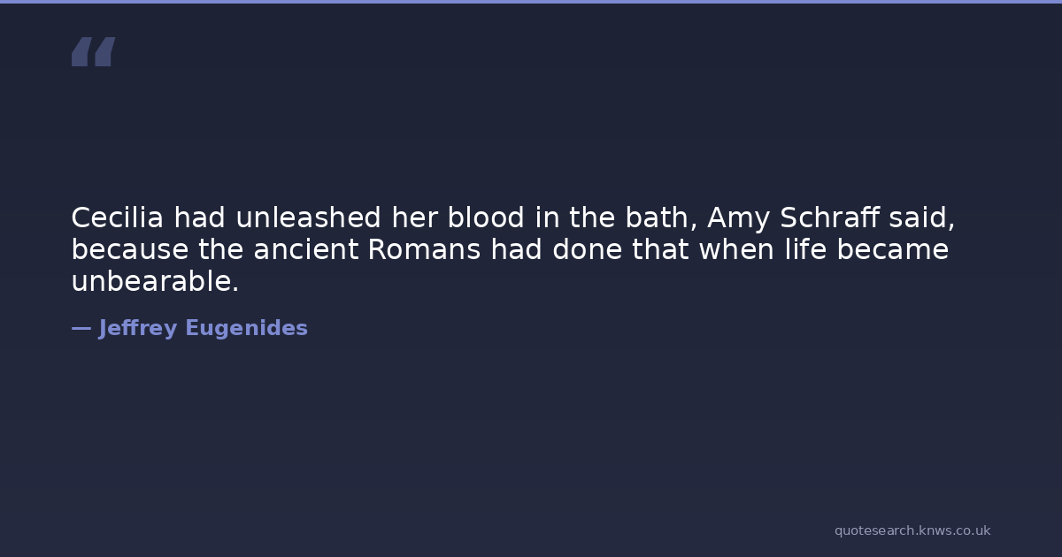 Cecilia had unleashed her blood in the bath, Amy Schraff said, because the ancient Romans had done that when life became unbearable.