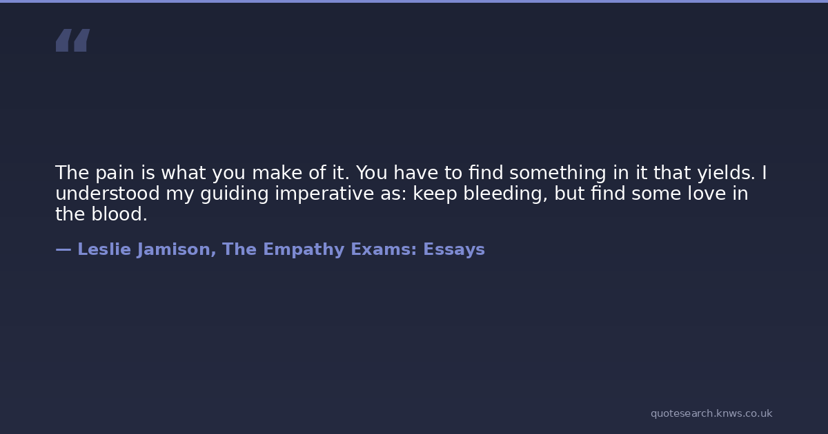 The pain is what you make of it. You have to find something in it that yields. I understood my guiding imperative as: keep bleeding, but find some love in the blood.